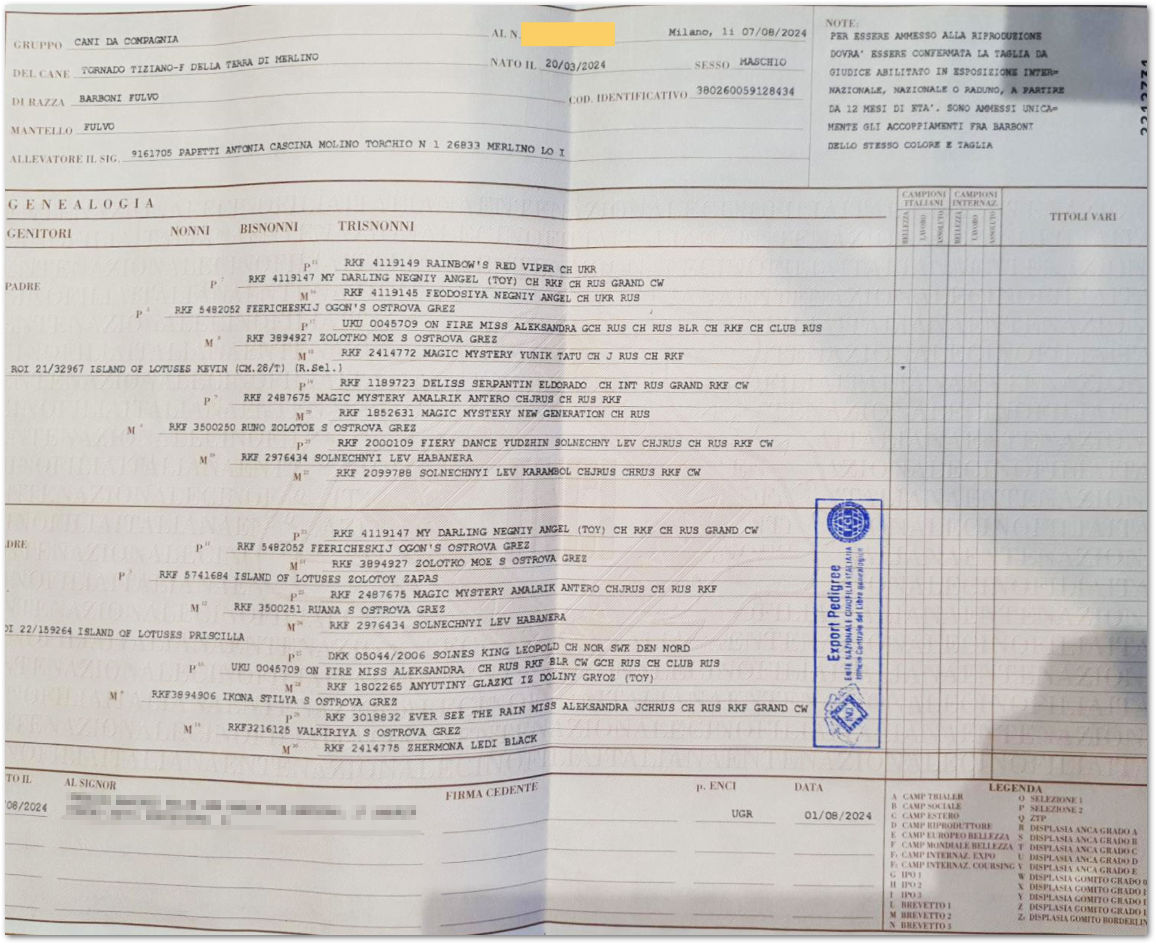Viajamos a Italia para traerlo. Con muchísimo cariño, intento añadir otro macho a mi criadero. Es un cachorro feliz, sociable y juguetón.